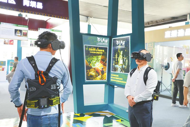 深圳市民沉浸式体验三星堆VR考古发掘现场。 德阳市委宣传部供图