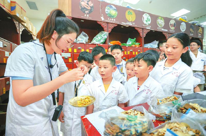 在遂宁市中医院,小朋友正在认识中药材。 刘昌松 摄(C视觉)