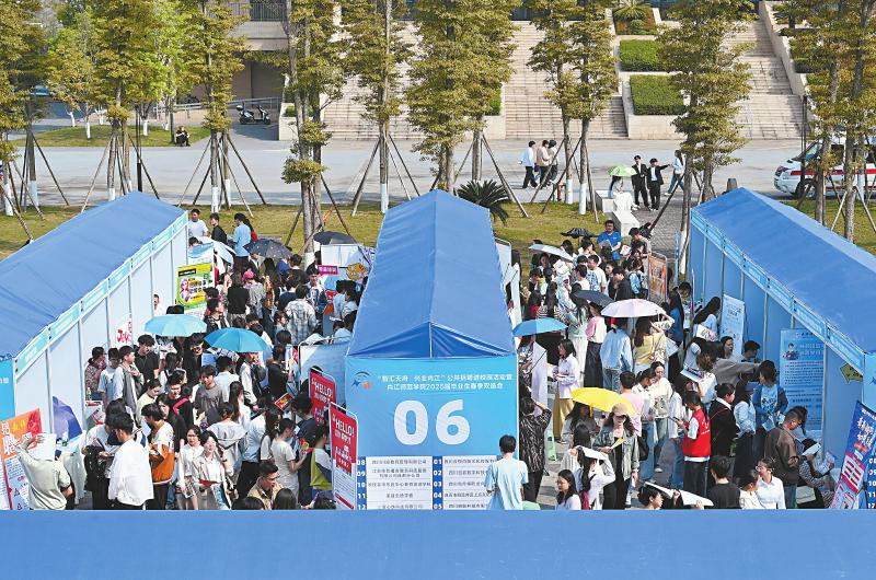 4月10日,内江市“智汇天府 兴业内江”公共招聘进校园活动在内江师范学院举行。此次招聘活动共吸引全国各地的170余家用人单位提供就业岗位4000余个,涵盖教育、建筑、金融、文化传媒等多个领域。 兰自涛 摄(C视觉)