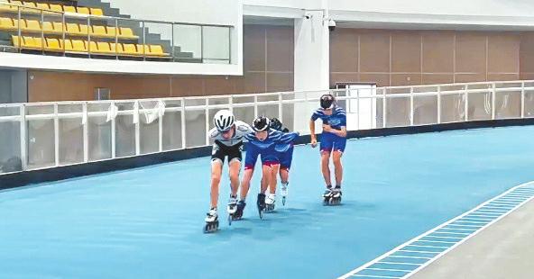 4月8日,运动员正在成都国际轮滑运动中心场馆进行练习。 邹嘉语 摄