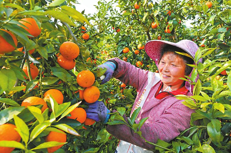 4月8日,果农正在采摘柑橘。
