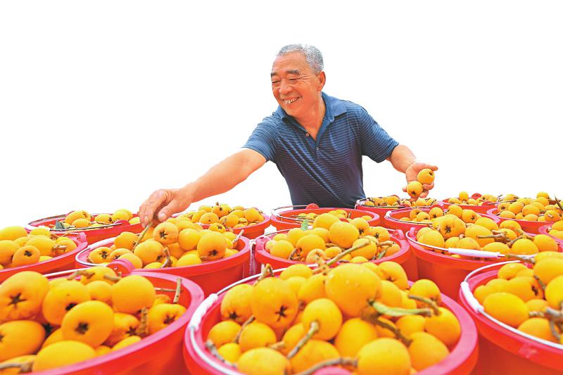 4月21日,眉山市仁寿县文宫镇古佛社区村民在分拣大棚枇杷。 潘建勇 摄(C视觉)