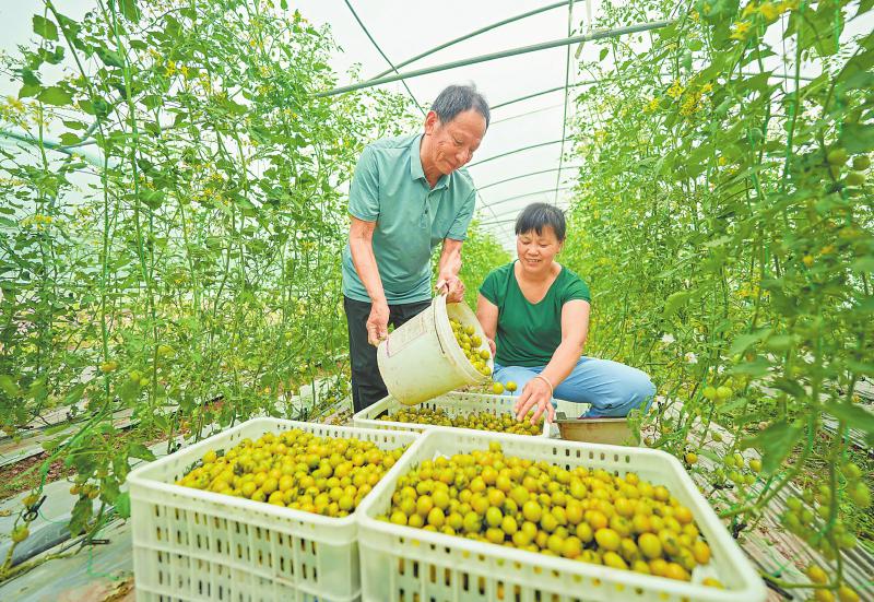 4月21日,遂宁市大英县回马镇郪口村绿色果蔬基地,工人忙着采摘新鲜小番茄。 刘昌松 摄(C视觉)