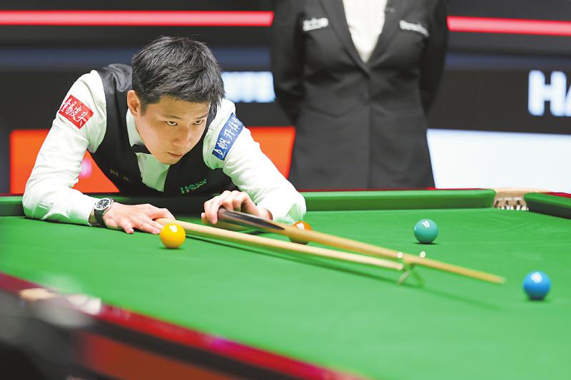 5月5日,赵心童在决赛比赛中。新华社发(翟政 摄)