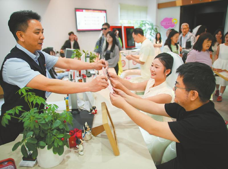 20250511四川日报图片 来源:20250511四川日报 发布时间:2025-05-11 15:13:07 浏览次数: 次 【字体:小 大】 5月10日,在成都市锦江区民政局合江亭婚姻登记处,来自重庆市梁平区的李女士和成都市龙泉驿区的郭先生成为“全国通办”施行后,在这里办理婚姻登记的第一对新人。 四川日报全媒体记者 韦维 摄 2025年5月中旬,华电金沙江上游巴塘水电站首台机组将投产发电,为沿江两岸百姓提供“绿色红利”。 中国华电出资修建的金沙江大桥。□新意(图片由华电金沙江上游水电开发有限公司提供) “金熊猫奖·意大利之约”交流会现场。 四川文化传播有限公司供图 来源: 20250511四川日报 终审:唐志昂 分享到: 关闭本页 【打印正文】