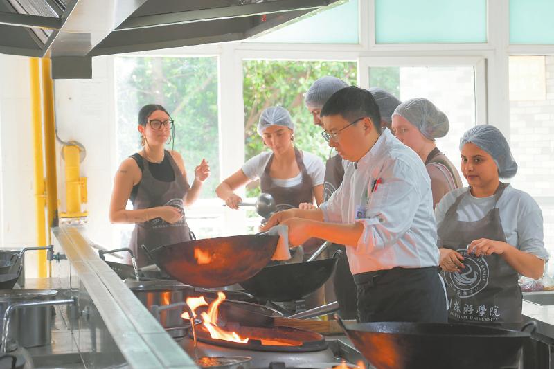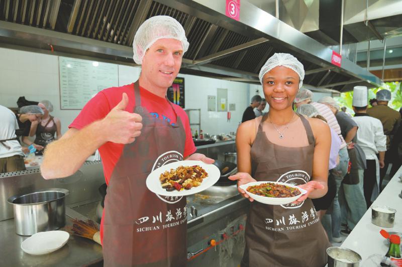 留学生自主完成川菜“宫保鸡丁”和“麻婆豆腐”。