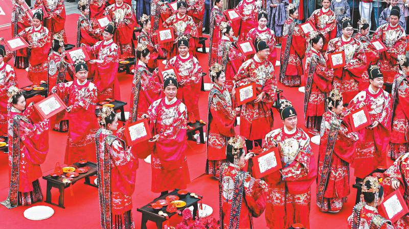 5月17日,泸州市江阳公园,2025年“为爱减负·三生同和”集体婚礼活动在此举行,60对新人在亲朋好友和现场观众的见证下浪漫牵手,喜结良缘。近年来,泸州市积极推进婚俗改革,倡导婚事简办、喜事新办的文明婚俗新风尚。刘学懿 王琳 摄(C视觉)