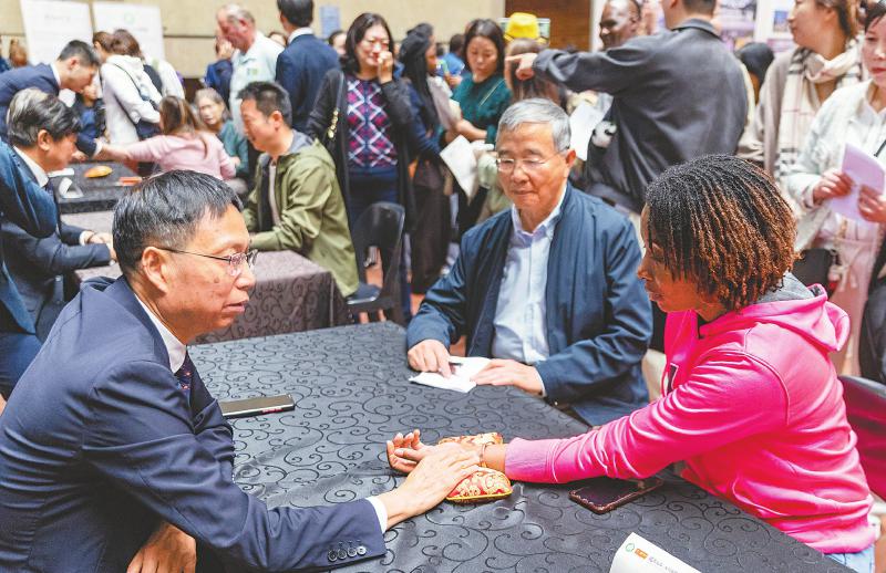 中医药南非行 5月16日,在南非约翰内斯堡举行的“健康丝路·天府有约——2025四川中医药南非行”活动上,中医专家为当地居民把脉。新华社记者 张誉东 摄