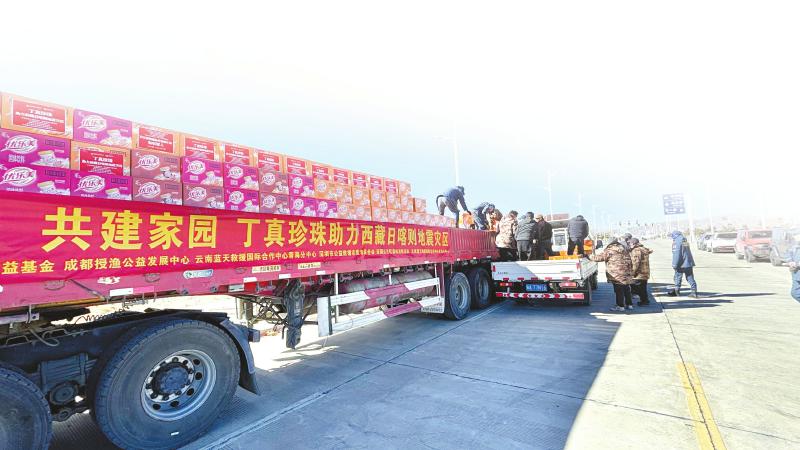 网络人士向西藏日喀则地震灾区捐赠物资。