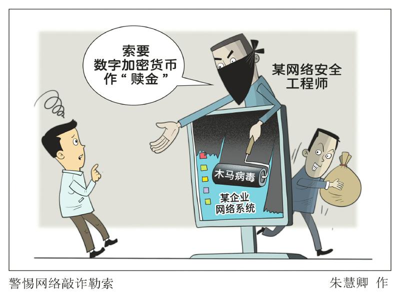 原本从事网络安全工作的工程师,竟干起黑客的勾当,利用木马病毒“黑”掉企业网络系统,索要数字加密货币作“赎金”……近日,杭州市上城区人民法院一审宣判了一起特殊的敲诈勒索案件,四名被告分别以犯敲诈勒索罪、侵犯公民个人信息罪被判处有期徒刑。企业特别是中小企业要增强风险意识、完善安防措施,一旦遭遇网络敲诈勒索,及时固证维权。 朱慧卿 图
