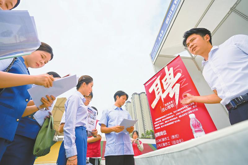 5月21日,位于眉山的天府新区通用航空职业学院内,大学生在高校毕业生双选会上寻找心仪的岗位。当天,由四川省职业介绍服务中心、天府新区眉山党工委党群工作部、天府新区眉山社会事务局等单位主办的“职引未来 筑梦启航”活动在该学院举行。来自四川、重庆等多个省份的200余家企业提供了4000余个岗位。 翁光建 摄(C视觉)