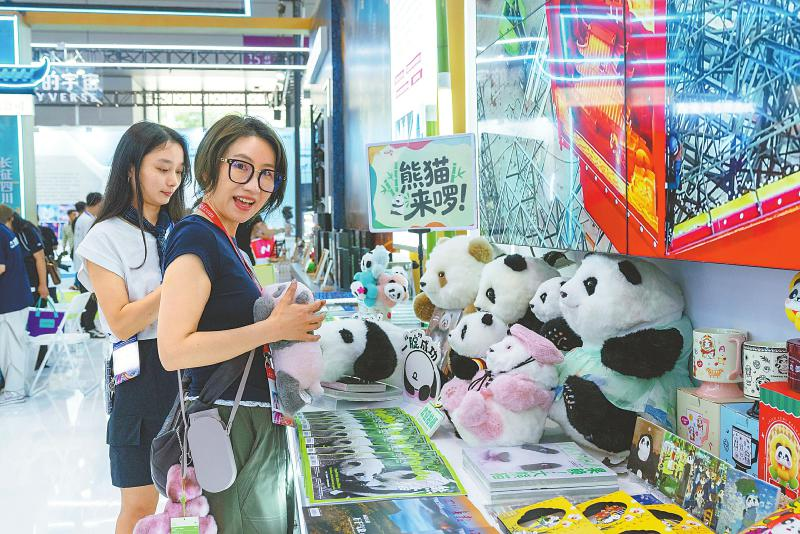 四川展馆内的熊猫文创产品受到观众欢迎。 本组图片均由四川日报全媒体记者 黄潇 摄
