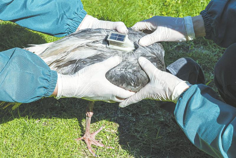 2025年5月19日,沐川朱鹮繁育中心,科研人员给准备放飞的朱鹮安装北斗卫星定位器。 本组图片由四川日报全媒体记者 何海洋 摄