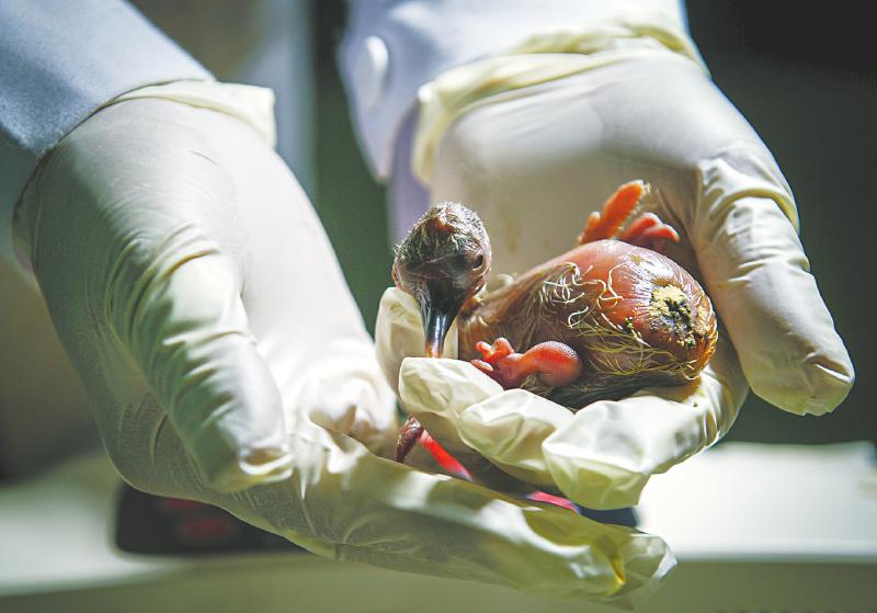 2017年4月18日,峨眉山生物资源实验站朱鹮驯养繁殖研究基地内,在川出生的第一只朱鹮,它存活至今。