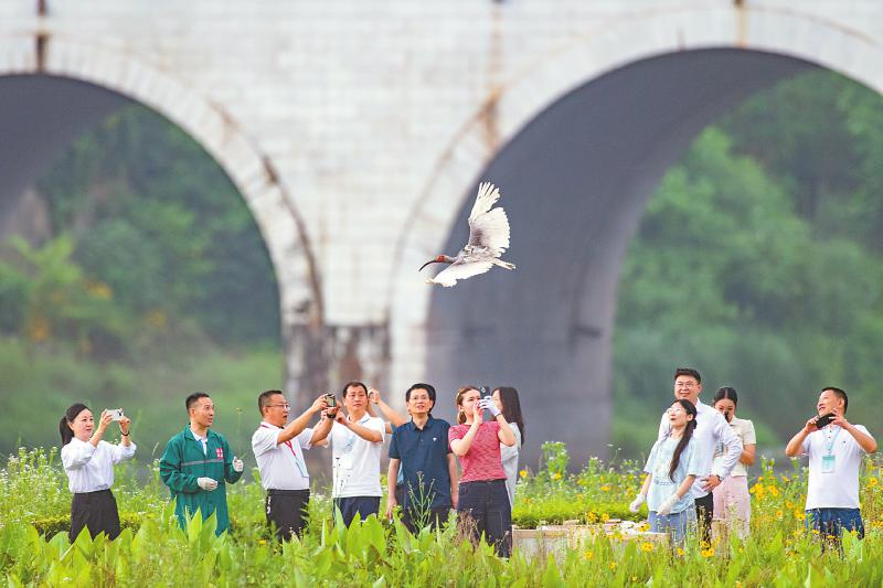 野化训练中的朱鹮。 四川日报全媒体记者 赵明 摄