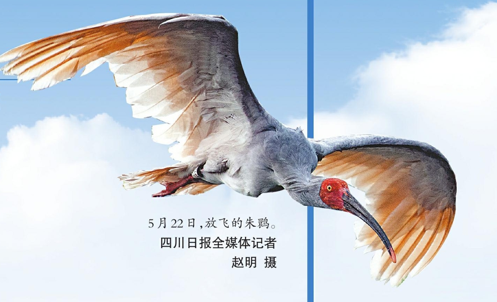 五月二十二日,沐川县湿地公园,十二只经过严格筛选和训练的朱鹮飞向大自然,开启全新的野外生活。