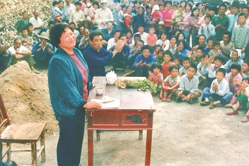 刘兰芳早年在山东莒县演出。 (受访者供图)