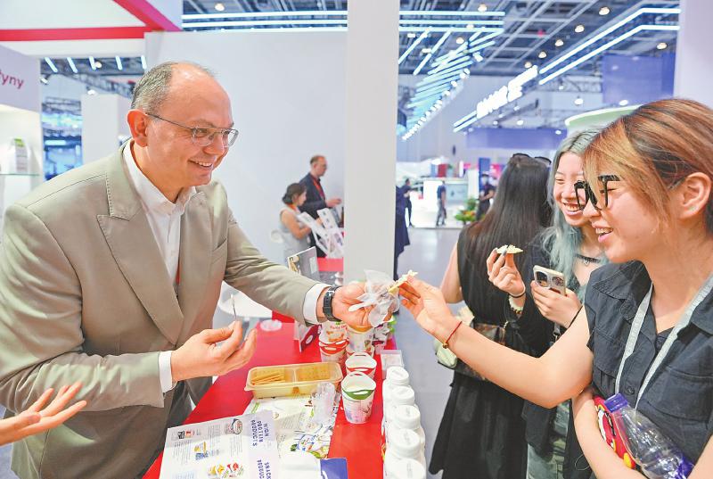 5月22日,波兰参展商在中东欧展馆推介奶酪。 新华社记者 黄宗治 摄