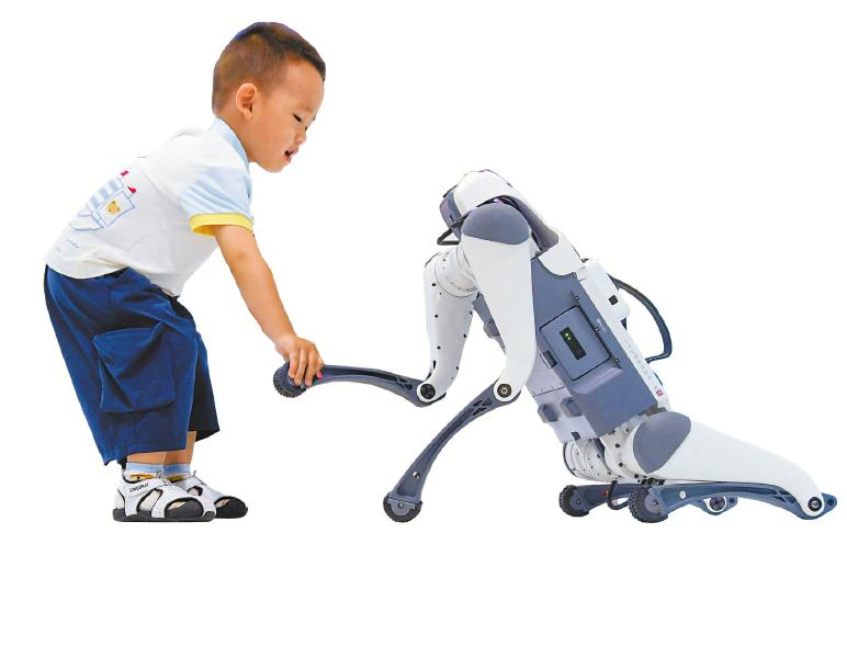 5月25日,主展馆内,小朋友与机器人握手。四川日报全媒体记者 何海洋 摄