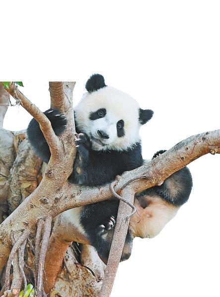 5月27日,雄性大熊猫宝宝“得得”在香港海洋公园“大熊猫之旅”展馆内玩耍。新华社记者 陈铎 摄