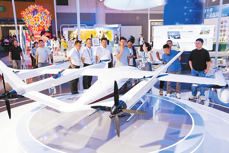 5月25日,嘉宾参观西博会上展出的新型无人飞行器。
