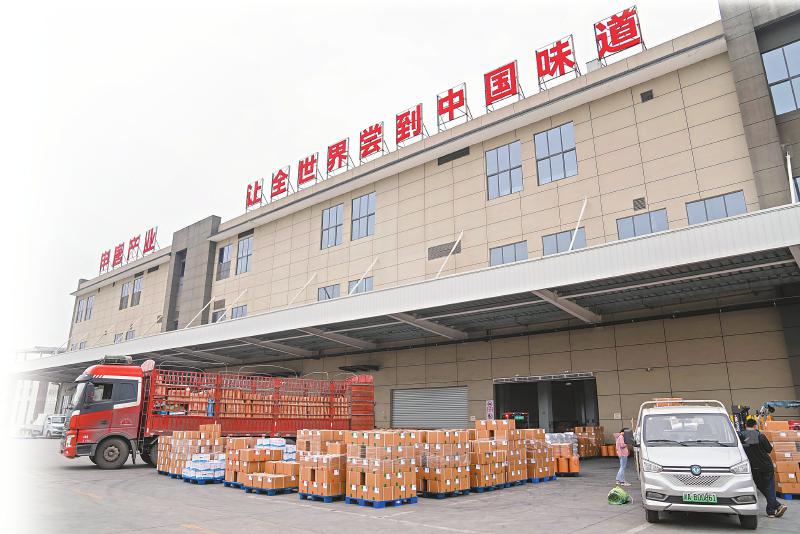 六月六日,申唐食品基地里货车正在装货。四川日报全媒体记者李强摄