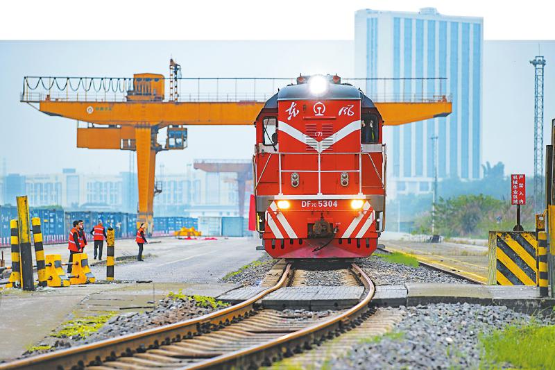 西南(自贡)国际陆港内,越来越多的“自贡造”产品搭乘班列“出海”。 尚永高 摄