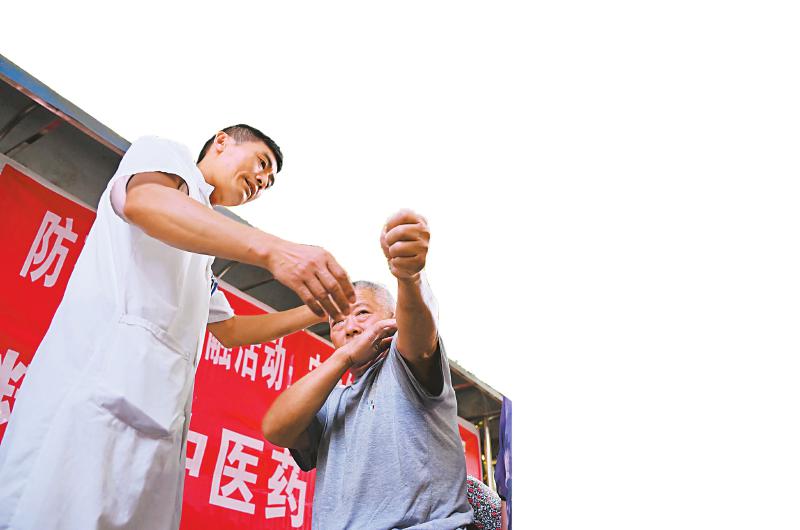 6月10日,内江市东兴区新江社区卫生服务中心组织专业中医服务团队进驻社区,开展中医义诊活动,让居民在家门口就能享受中药、针灸、推拿、拔罐等特色诊疗服务。李建明 摄(C视觉)