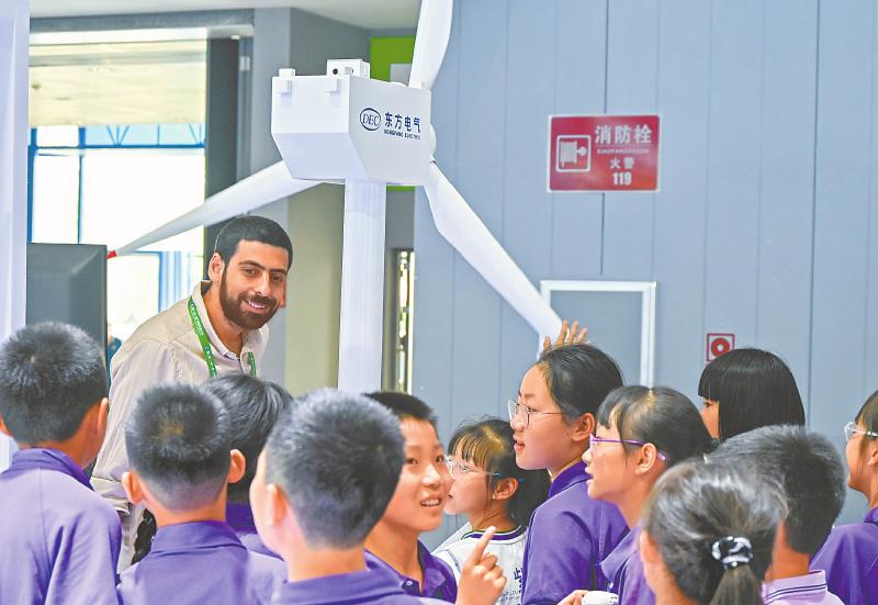 参会嘉宾与来参观的学生交流。四川日报全媒体记者 何海洋 摄
