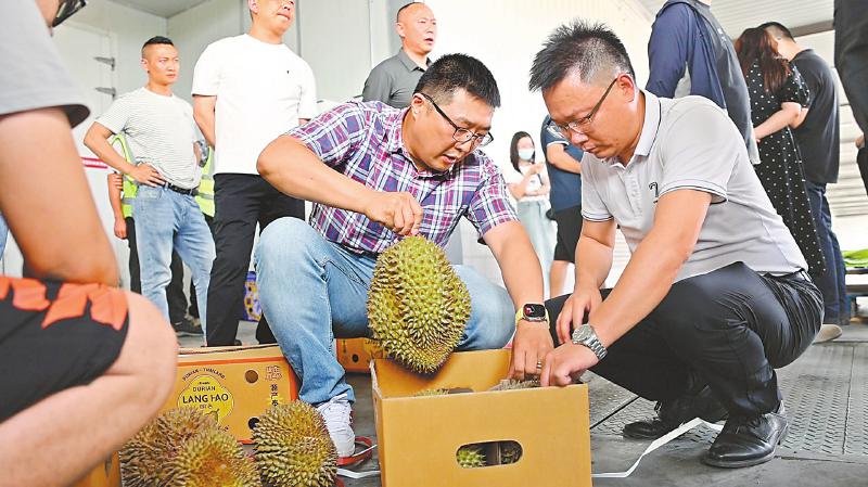 进口商在现场检验榴莲品质。四川日报全媒体记者 韦维 摄