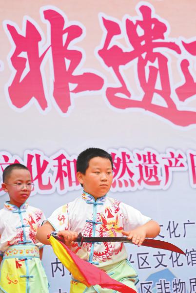 6月14日,内江市东兴老街,孩子们展示传统武术。唐明润 摄(C视觉)
