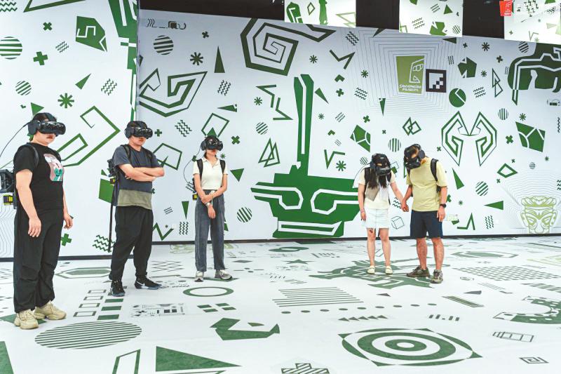 观众在三星堆博物馆体验互动项目。 三星堆博物馆供图