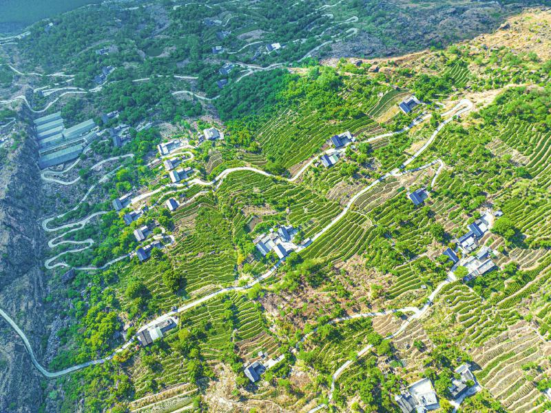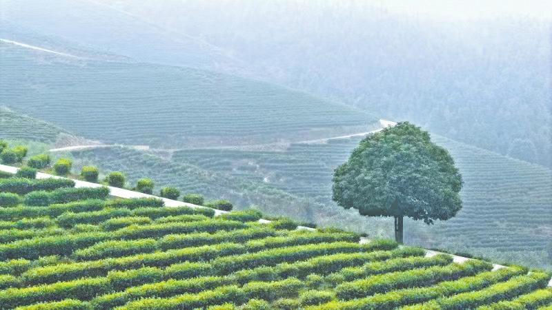 鸟瞰魁多镇云上天乡茶园。