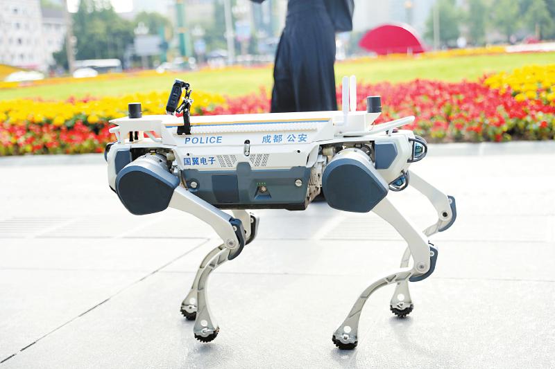 机器狗在成都天府广场巡逻。王翱 摄