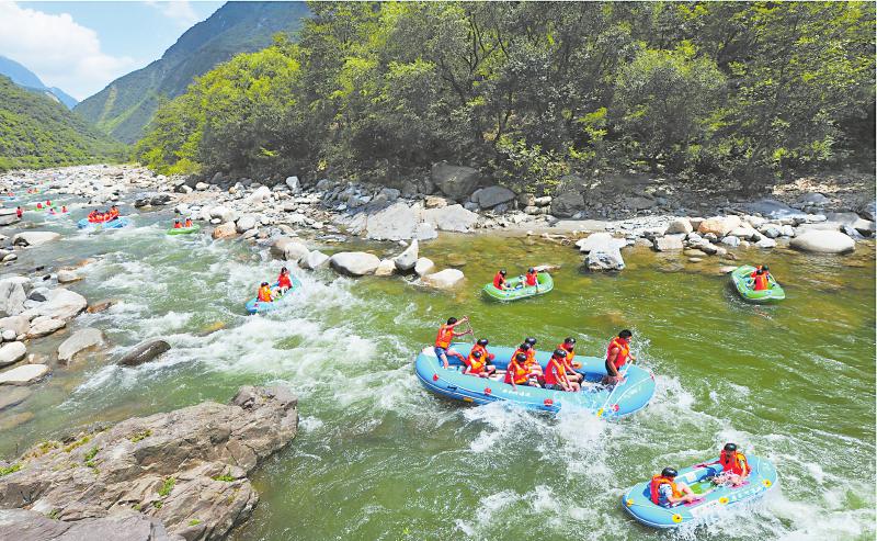 青溪古城景区,游客正在漂流。 青川县委宣传部供图