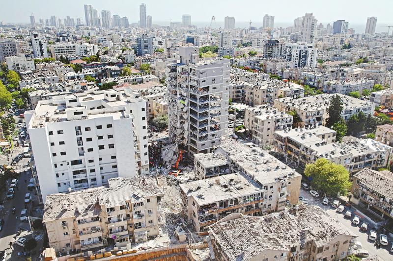 六月十五日,以色列中部巴特亚姆市在导弹袭击中被毁的建筑。新华社记者陈君清摄