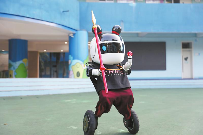 机器人“小吒”亮相成都市泡桐树小学。王翱摄