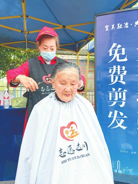 志愿者为居民理发。