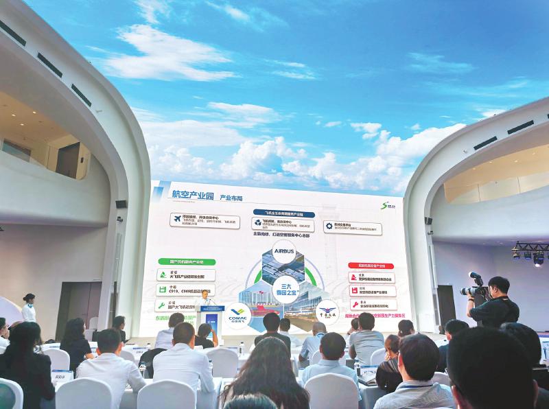 航空航天产业招投联动对接会现场,一片湛蓝的天空幕布吸引眼球。