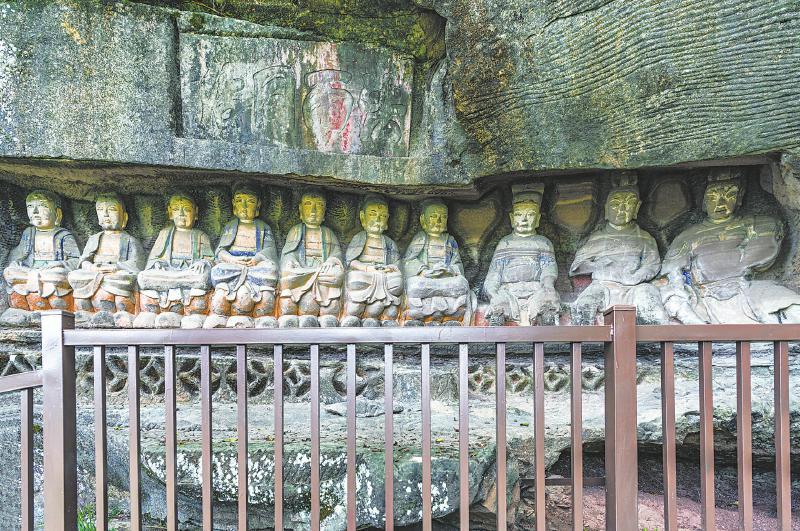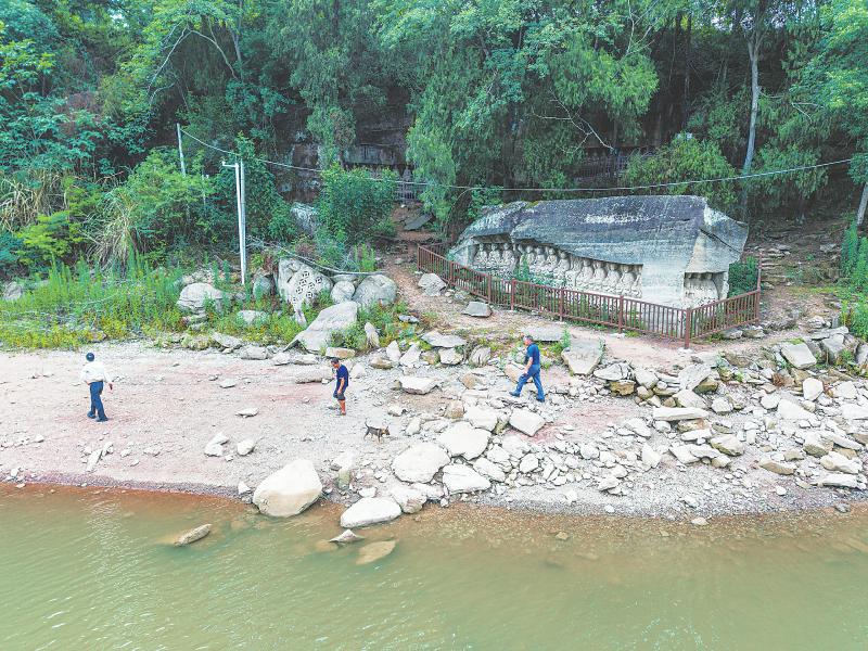 近日,资阳市安岳县来凤乡书房坝水库受持续高温少雨天气影响,导致水位与往年同期相比下降近3米,部分淹没于水库中的龛窟、造像、浮雕石塔等文物再次露出水面。当地文物部门迅速启动应急保护措施,也让这场因干旱意外促成的“重逢”成为文化与自然交织的独特景观。据悉,书房坝水库始建于上世纪70年代,库区有开凿于唐代和宋代的摩崖造像龛窟43个、造像155尊、浮雕石塔3座、题记9通,水库建成后部分佛像淹没于水下。