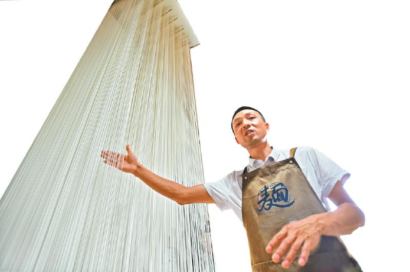 “德阳工匠”陈立亮展示手工制作的挂面。四川日报全媒体记者 华小峰 摄