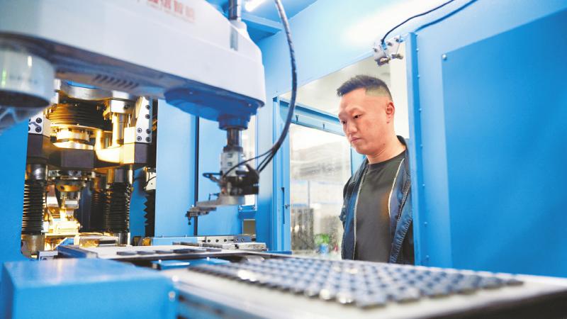邦普刀具遂宁新材料技术有限公司的生产车间,工人在生产数控刀具。