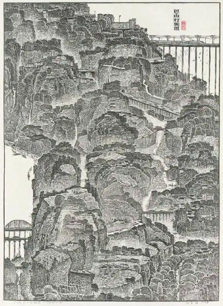 巴山行旅图(版画),尺寸:90cm×120cm。向思楼作