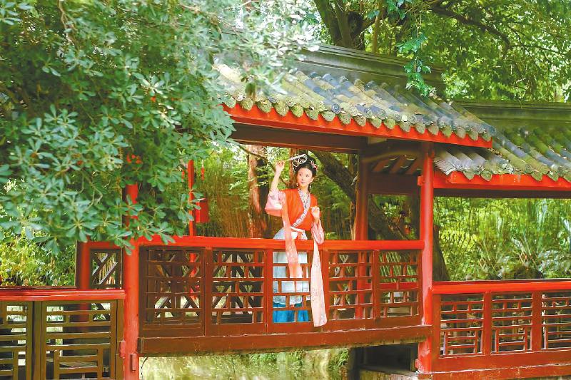 游客来罨画池体验《红楼梦》妆照。 受访者供图