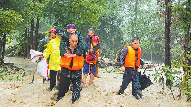 广元市青川县青溪镇党员干部转移受困群众。 青溪镇政府供图