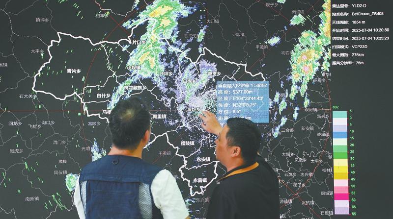 7月4日,北川防汛抗旱指挥部指挥大屏上实时显示来自“相控阵”的数据。