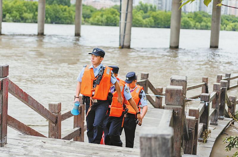7月6日,绵阳市公安局特巡警支队巡逻二大队民警在涪江流域东方红大桥河段巡查,排查安全隐患。 唐超 摄(C视觉)
