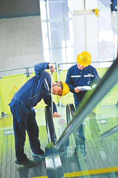7月10日,检验人员对成都世运会开幕式场地的电梯开展安全检验。四川日报全媒体记者 赵增兴 摄
