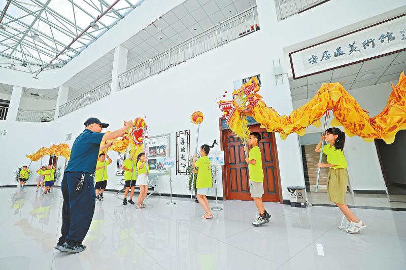 7月10日,遂宁市安居区2025年“运动强体质·艺术助成长”夏令营火热进行中。今年活动首次引入非遗项目,孩子们在遂宁竹编、舞龙舞狮、泥塑等特色培训班中沉浸体验,感受传统文化魅力,在运动与艺术的融合中快乐成长。 张勤宝 摄(C视觉)