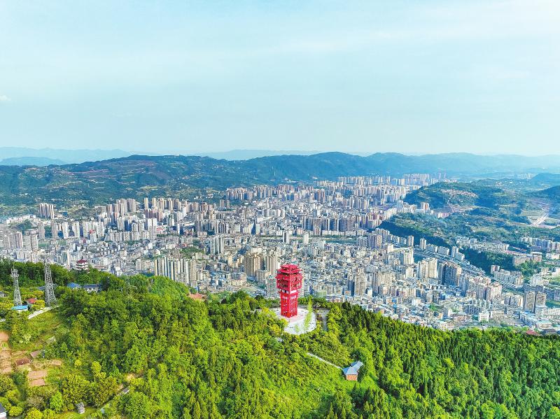 航拍达州凤凰楼。 李强 摄(C视觉)